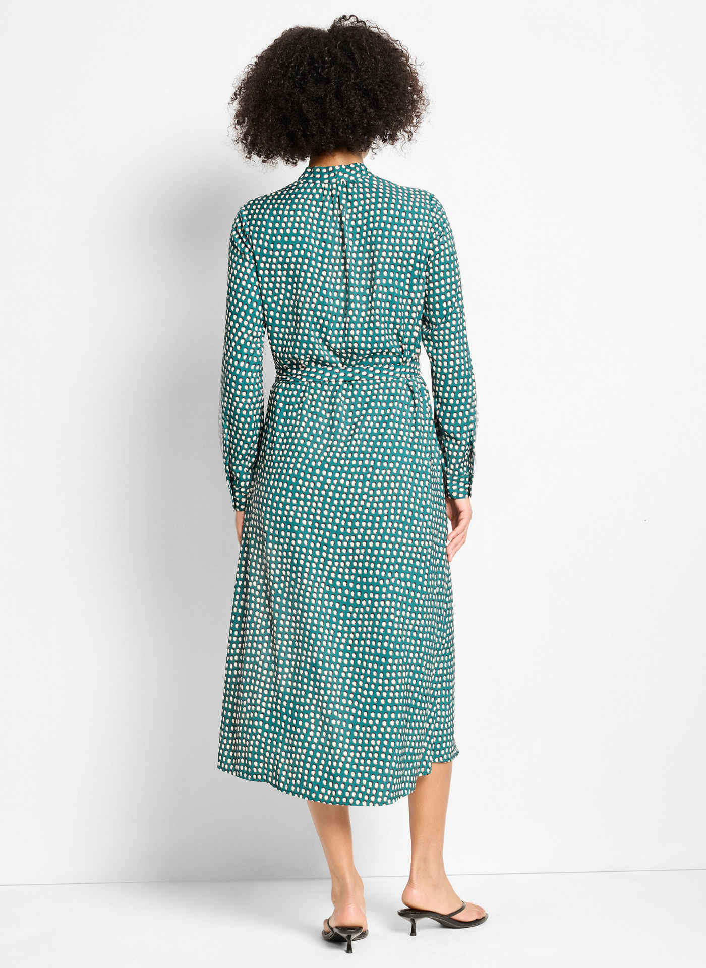 The perfect wear-to-work look when you're looking to inject some personality or wear it with some sneakers and give it a twirl on the weekends. A regular fitting A-line with a lively polka dot pattern. Features a self-tie belt, elegant V-neck, and side seam pockets