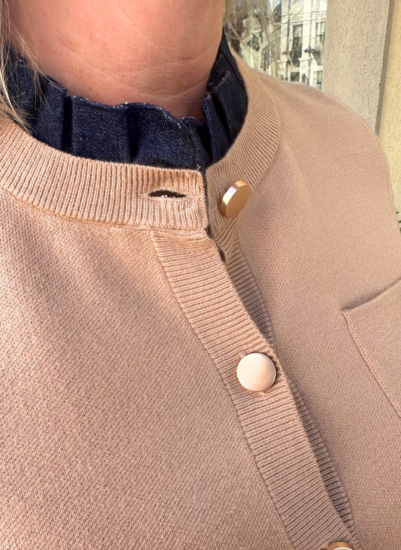 This classic cardigan style has an adorable denim trim collar detail to elevate this style!