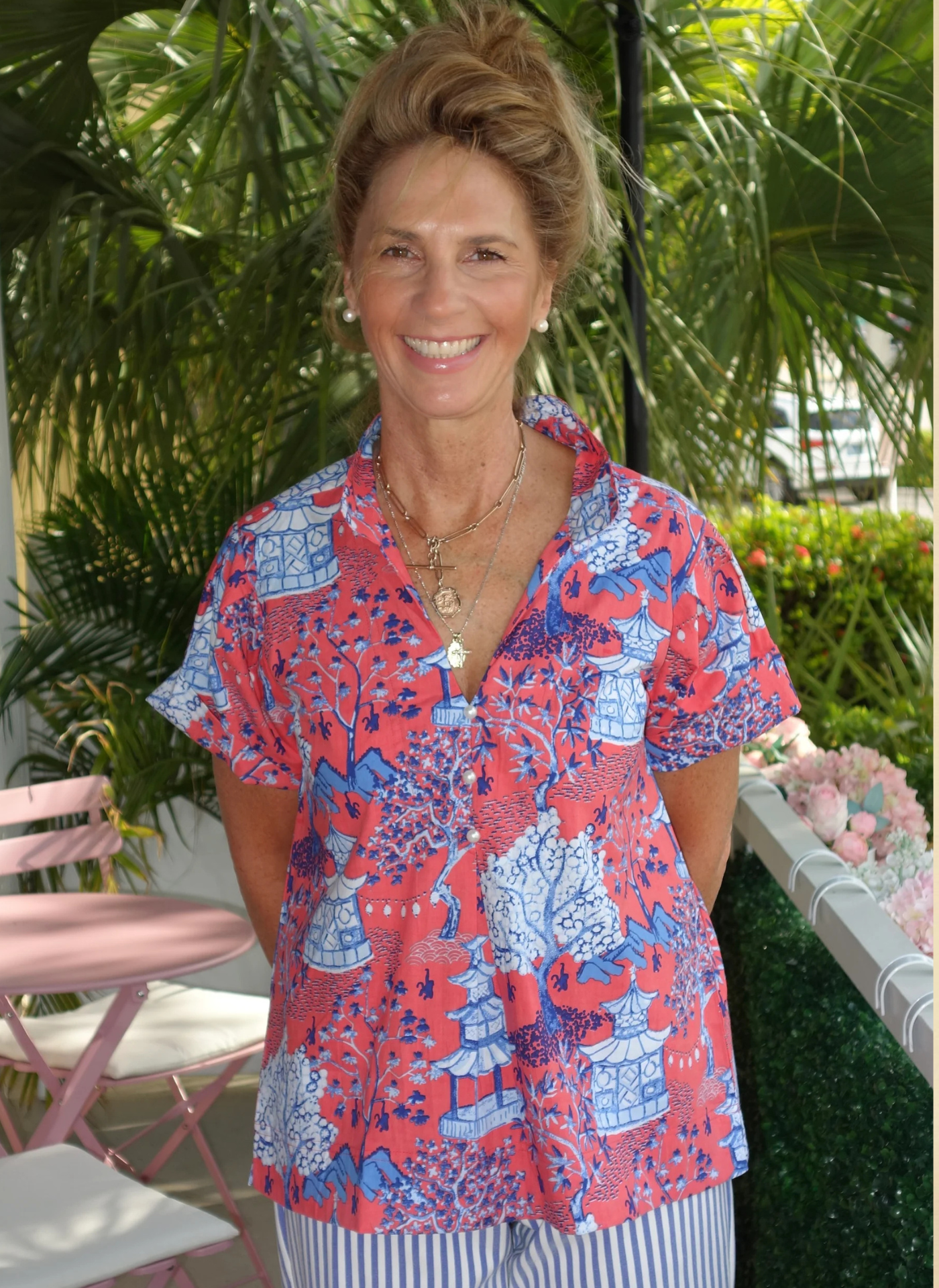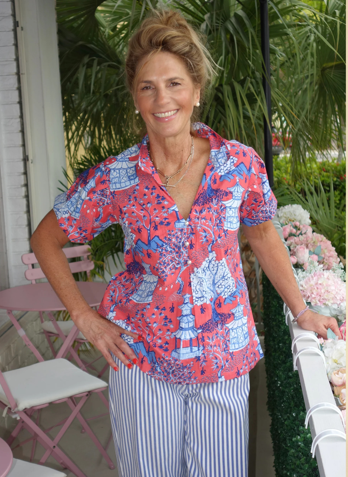 A timeless essential, the Kristina Top is designed with a flattering V-neckline accented by three delicate pearl buttons and short sleeves for a light, easy fit. Effortlessly versatile, it’s a go-to piece for every wardrobe.