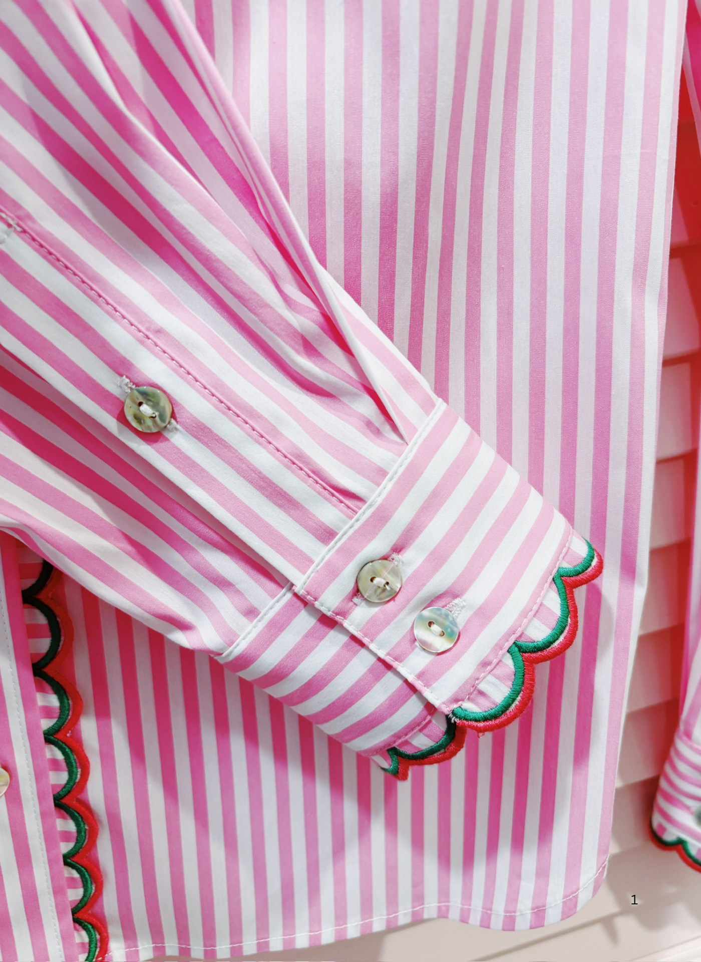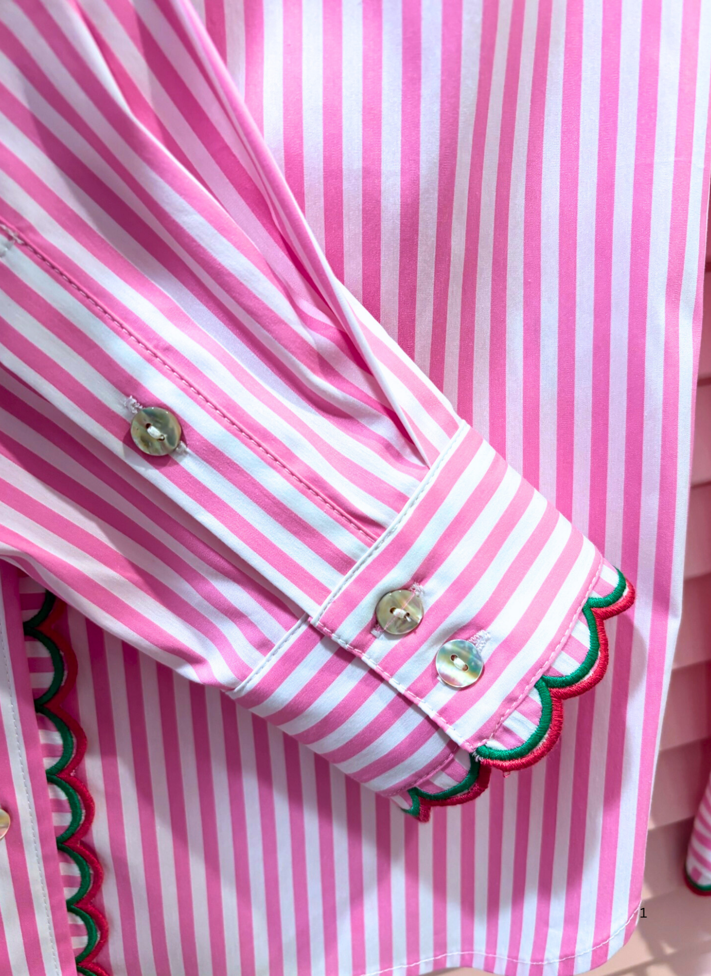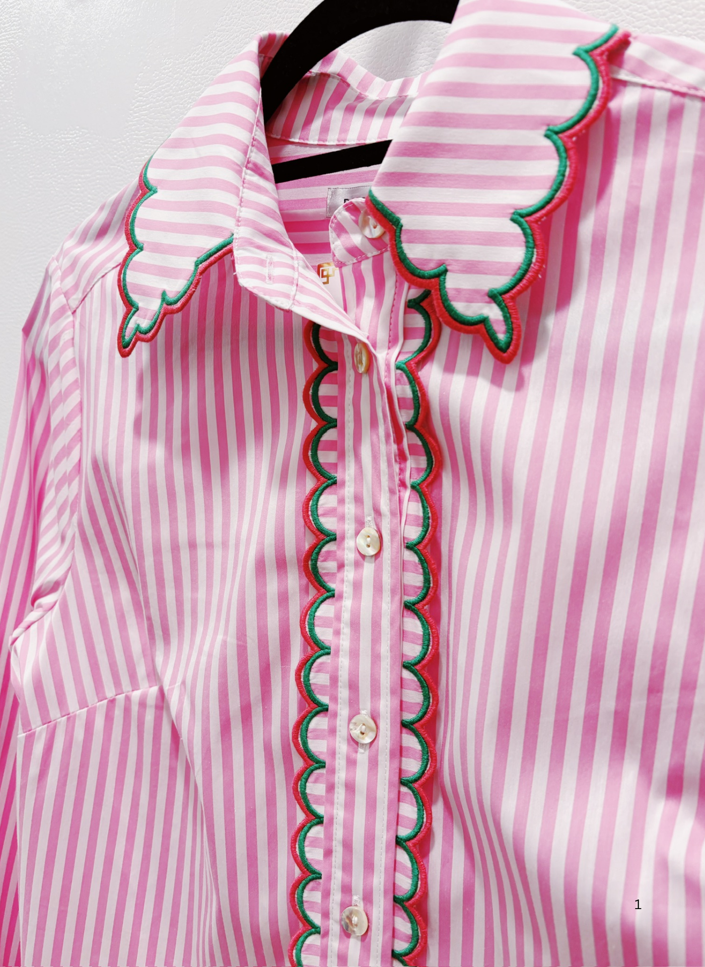 - Long Sleeve with Button Cuff and Scallop Embroidered Trim